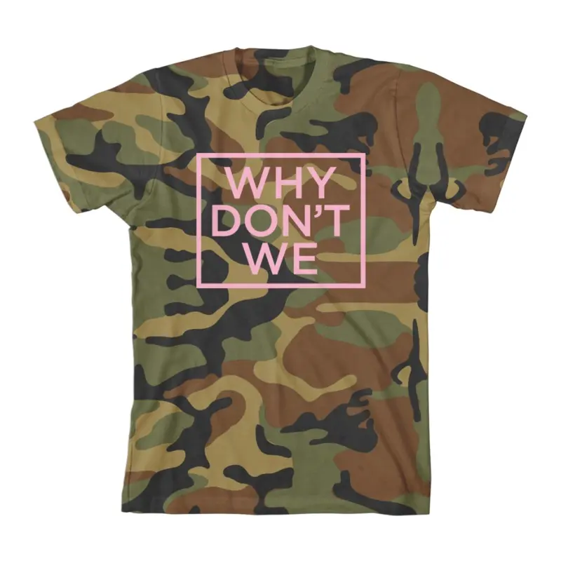 The Why Dont We Camo T-Shirt here features the band logo printed in pink on a unisexcamouflage t-shirt.
