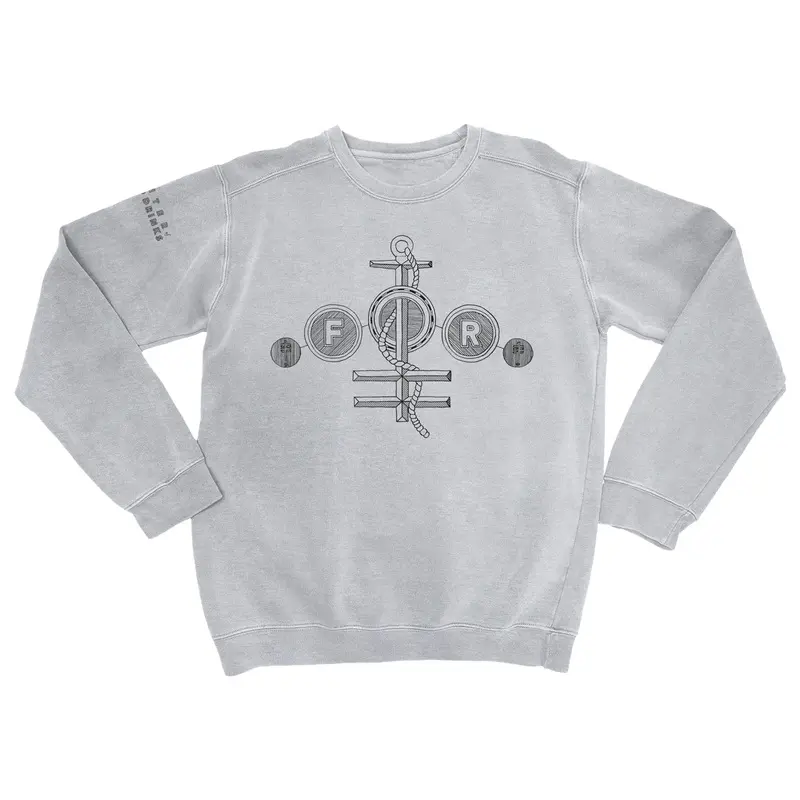 Winter of Mixed Drinks artwork on a Gildan grey sweatshirt.